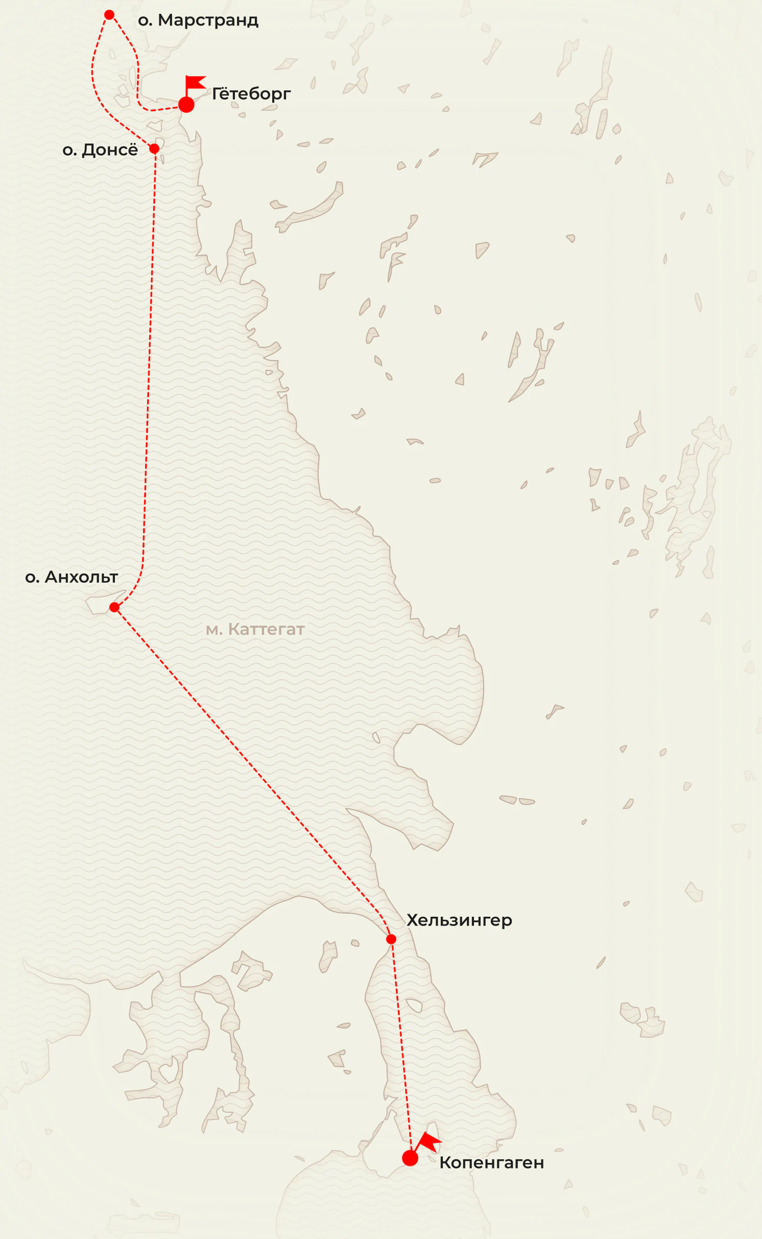 Копенгаген → Хельзингер → Анхольт → Донсё → Марстранд → Гётеборг